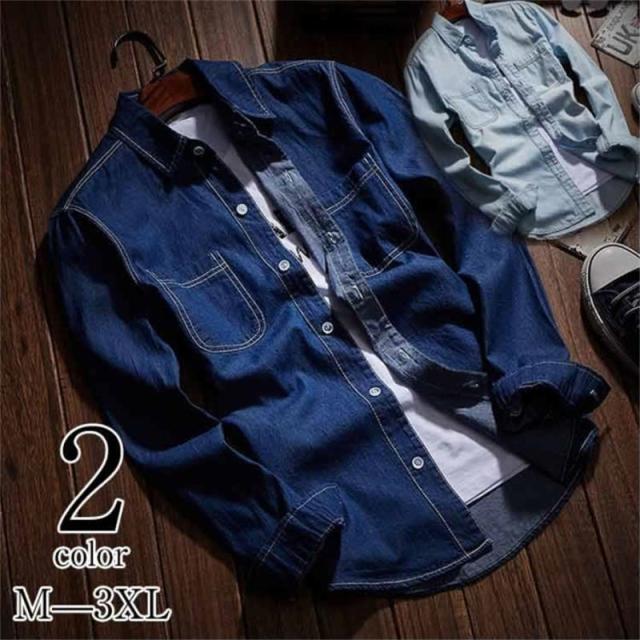 デニム シャツ 長袖 メンズ 長袖シャツ デニムシャツ 綿 コットン デニム インディゴ トップス ゆったり ウエスタンデニムシャツ