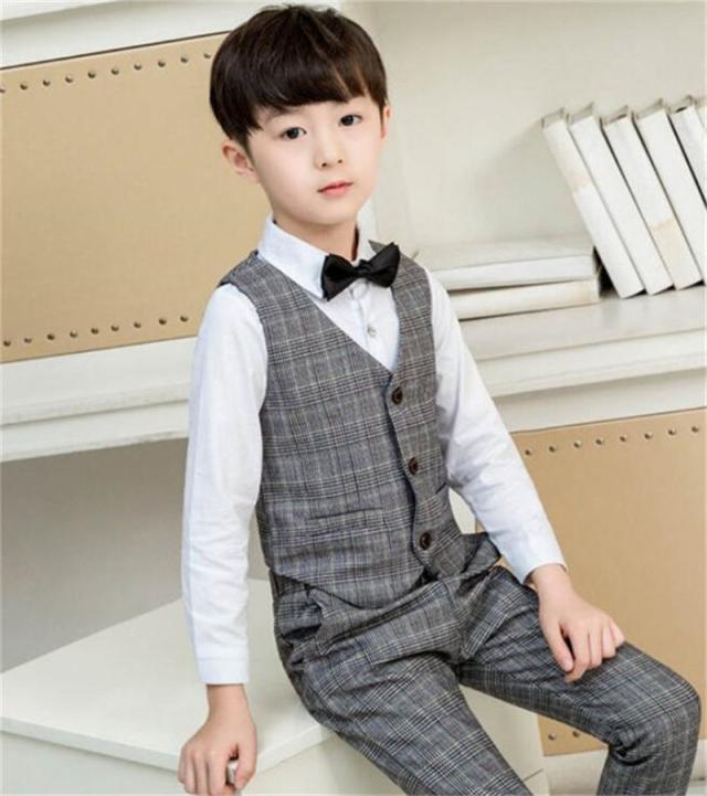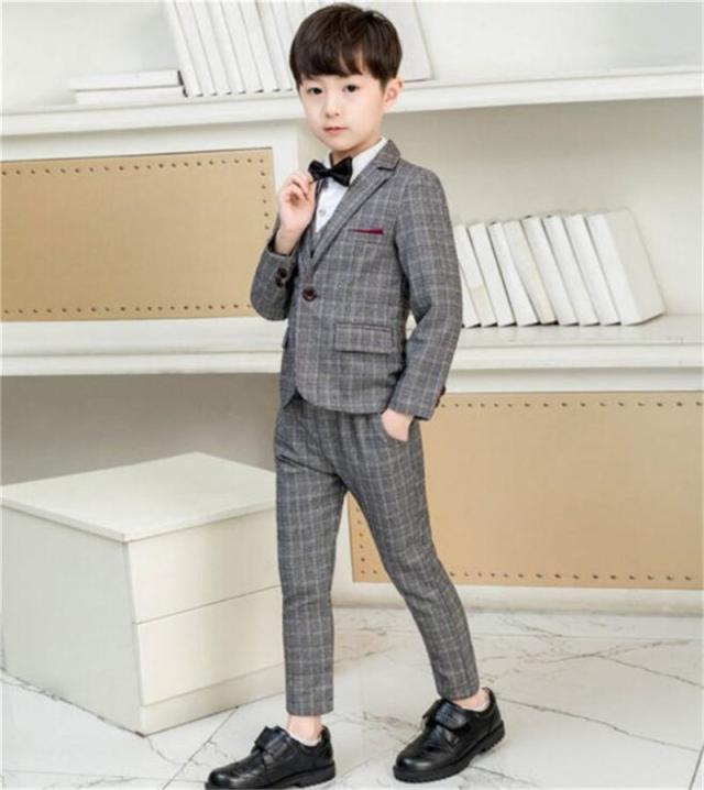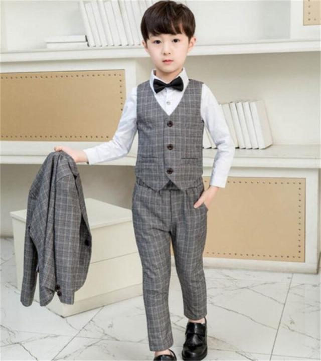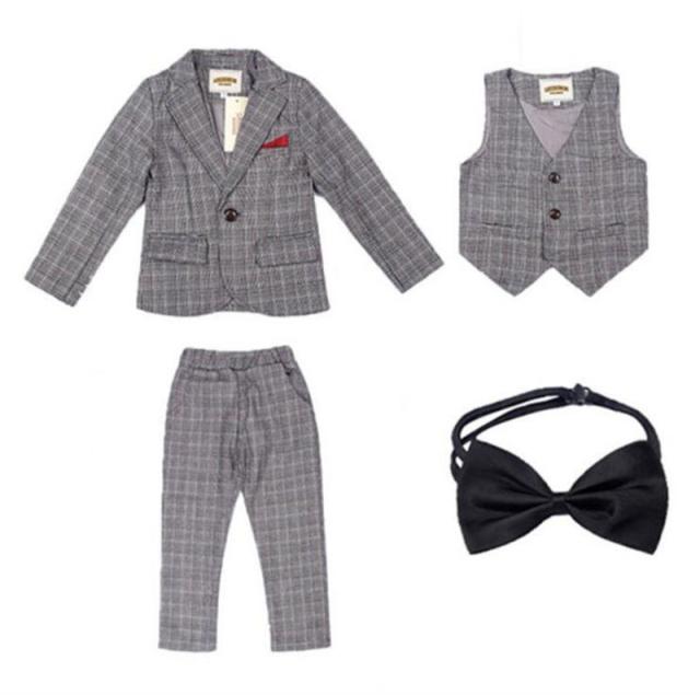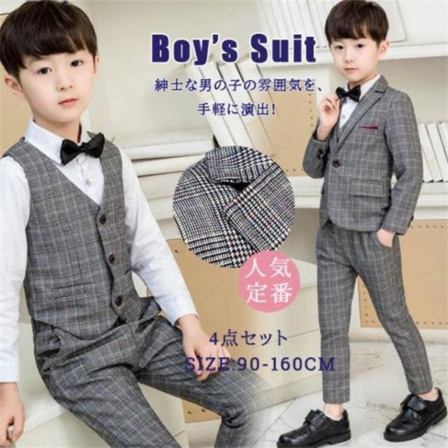 フォーマルスーツ 男の子 スーツ キッズ 子供 4点セット ベスト 上下セット セットアップ タキシード チェック柄 ジュニア 入学式 卒業式 七五三 結婚式 発表会