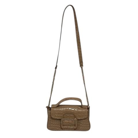 【中古】ザラ ZARA ショルダーバッグ ミニバッグ チェーン バックル スクエア 無地 ベージュ レディース