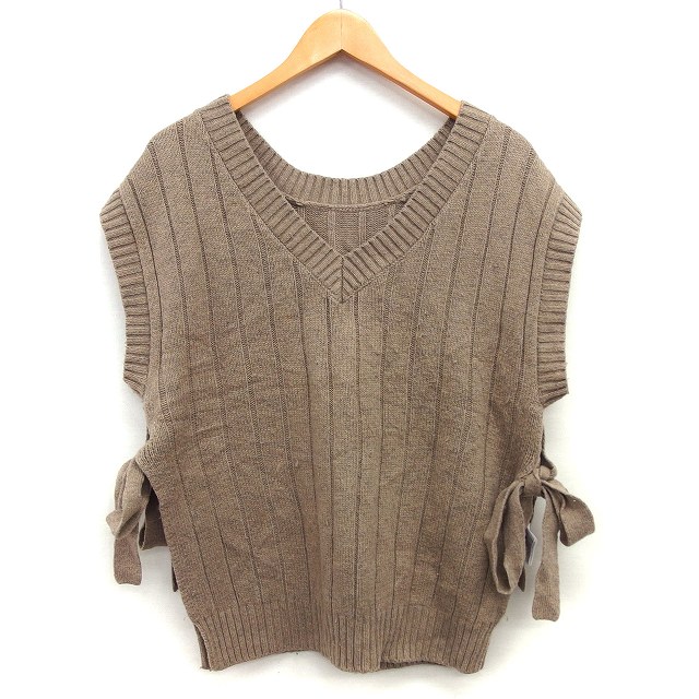 【中古】ダブルクローゼット w closet ニット ベスト ビスチェ リブ シンプル サイドリボン Vネック ウール混