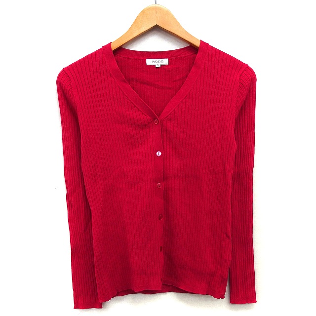 【中古】プラステ PLST リブニット カーディガン シンプル 長袖 Vネック M ショッキングピンク /HT28 レディース
