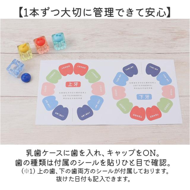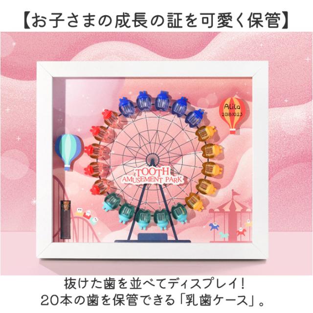 | 商品説明 | 【お子さまの成長の証を可愛く保管】 ・抜けた歯を並べてディスプレイ!20本の歯を保管できる「乳歯ケース」。 【1本ずつ大切に管理できて安心】 ・乳歯ケースに歯を入れ、キャップをON。歯の種類は付属のシールを貼りひと目で確認。 (※1)上の歯、下の歯両方のシールが付属しております。抜けた日付も記入できます。 【選べるボーイ&ガールデザイン】 ・遊び心のある、可愛らしい観覧車デザイン♪歯を入れたケースを、歯並びに合わせて円形に。 【作業がラクになるアイテム付き】 ・乳歯の固定や深さ調整に便利な脱脂綿、歯を掴むピンセットが付属。 【幸せに育つように願いを込めて】 ・産毛を入れておけるミニボトルと、願いを書き込めるウィッシングペーパー。乳歯と一緒に保管。 【お好みの位置に装飾OK】 ・装飾用のモチーフも付属。セットで付いている両面テープを使って、好きな位置に貼り付け。 (※2)装飾用のモチーフに、お子さまの名前や誕生日などを書くことも可能です。 【立てかけも壁掛けもできる2way】 ・背面のスタンドを使って飾っても良し、フックを使って壁掛けも。お好きな飾り方をチョイス。 |