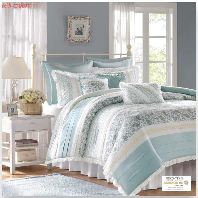 サイズ:Queenカバー 100%コットン寸法:(Queen)1デュベットカバー 229 x 229cm1ベットスカート 153 x 203cm2スタンダードシャム 51 x 66cm2ユーロシャム 66 x 66cm3飾りクッション 40 x 40, 30.5 x 46, 46 x 46cm注意:ブリーチを使用しないでください。乾燥機のご使用はお避けください。