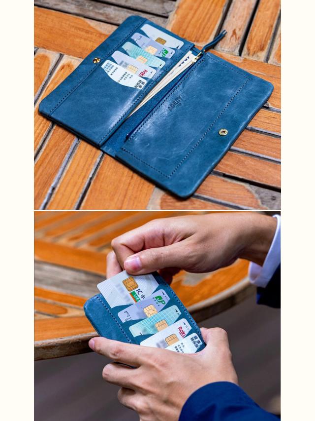 ソフトな革を内側からミシンでまとめて仕上げたふんわりやさしいシルエットの長財布です。