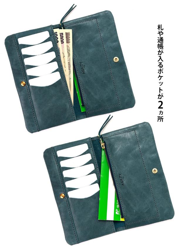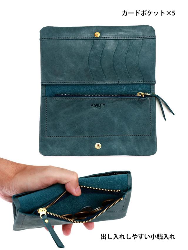 長財布 レディース メンズ ブランド 薄型 本革 革 レザー かぶせ 二つ折り 薄い コンパクト 軽量 スリム 黄 緑 ピンク 青 黒 男女兼用 ウォレット シンプル おしゃれ 財布 AGILITY アジリティ コンパクト長財布 クラム 0637