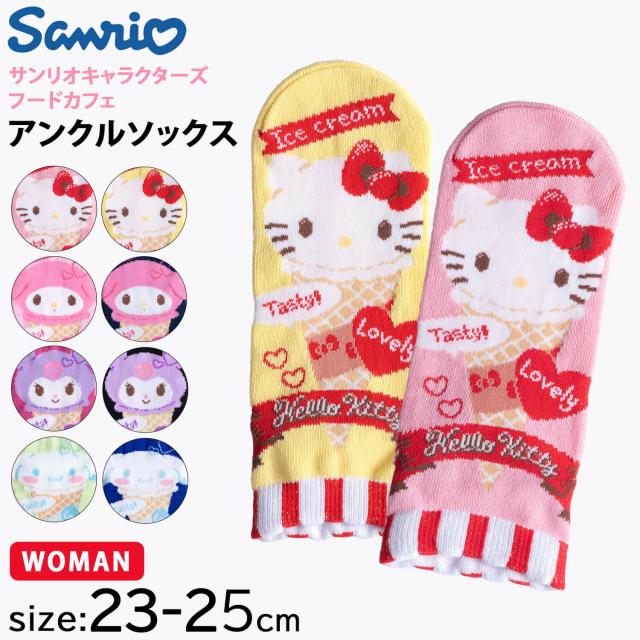 サンリオ sanrio 靴下 レディース ソックス アンクル丈 1P くるぶし スニーカーソックス ハローキティ マイメロディ クロミ シナモロール キャラクターグッズ 大人向け かわいい おしゃれ 23cm-25cm 2024 outfit