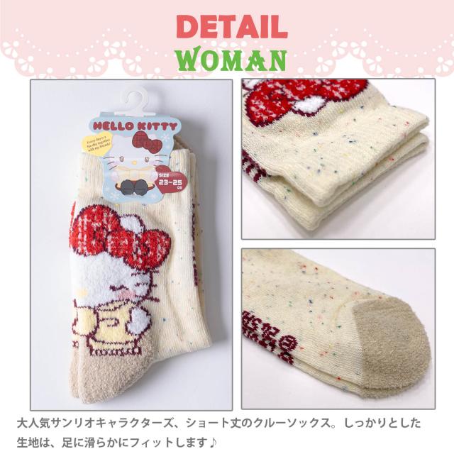 サンリオ sanrio 靴下 レディース キッズ ソックス クルー丈 1P くるぶし スニーカーソックス ハローキティ マイメロディ クロミ キャラクターグッズ 大人向け 子供用靴下 女の子 かわいい おしゃれ 15cm-20cm 23cm-25cm 2024 outfit