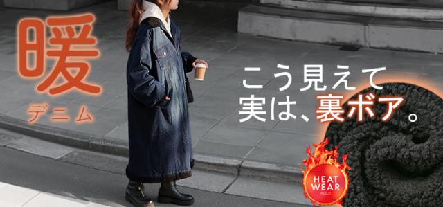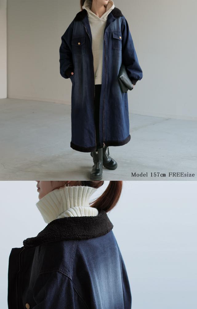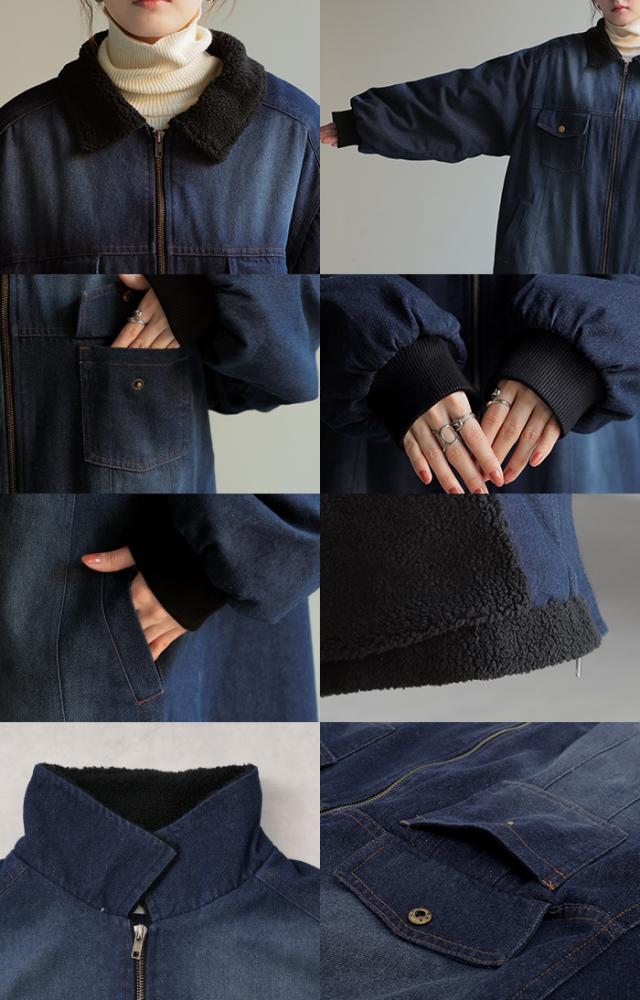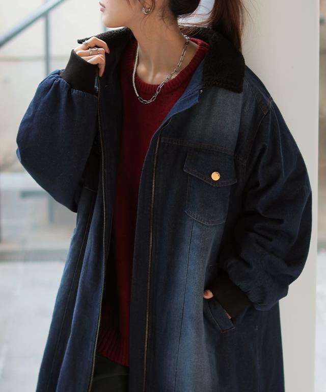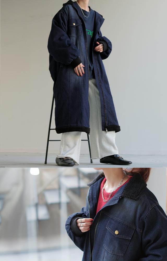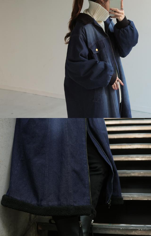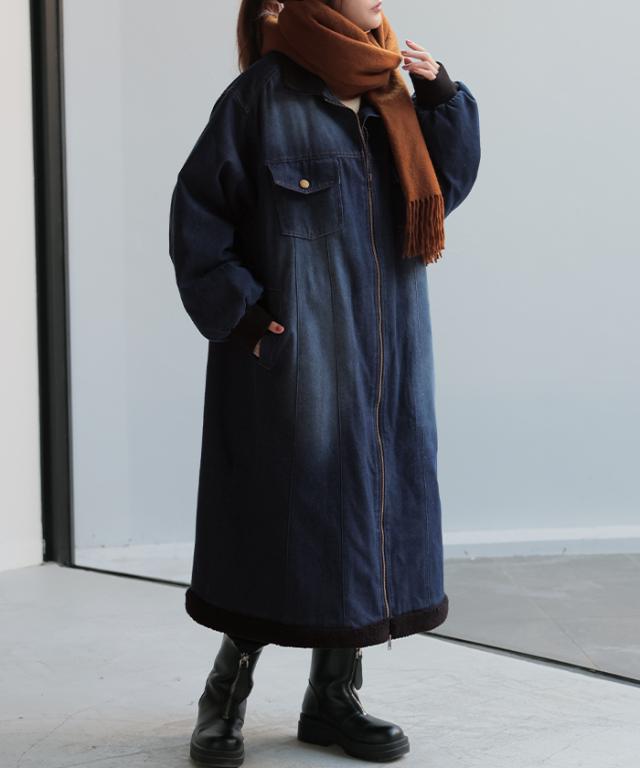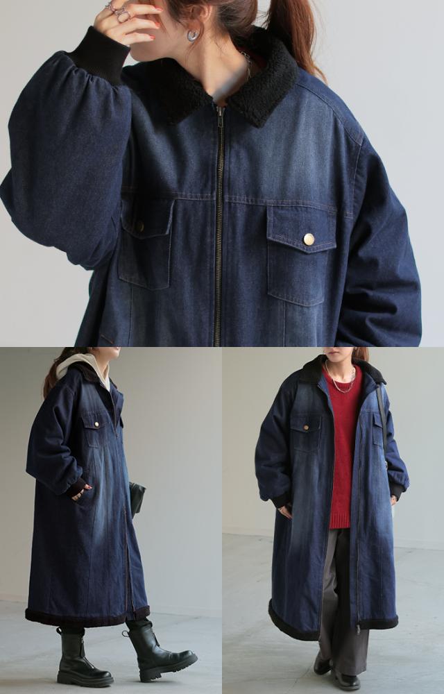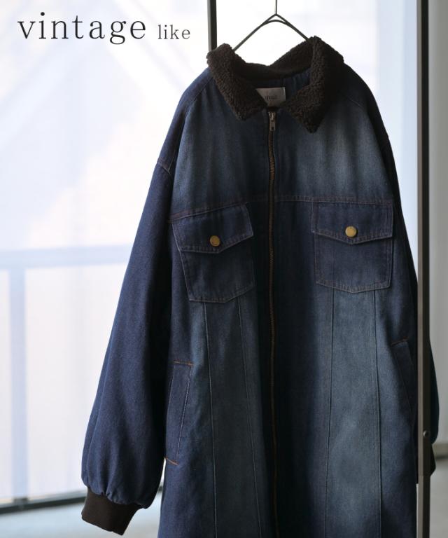 ヴィンテージ感の雰囲気ある裏ボア使いのロングデニムコートです。