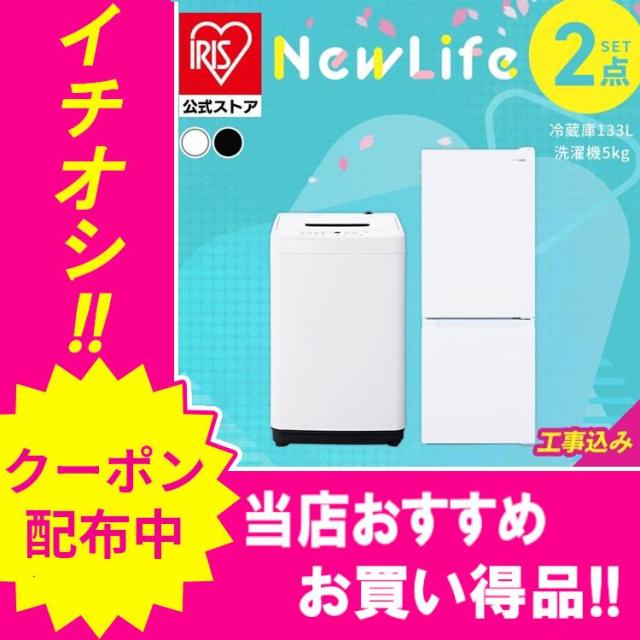 【ノベルティ対象】\設置サービス込み/ 【家電2点セット】家電セット 新品 一人暮らし 2点 冷蔵庫 洗濯機 セット 小型 スリム コンパクト シンプル 単身 新生活 春 白 黒 冷蔵庫 133L 洗濯機 5kg ホワイト ブラック アイリスオーヤマ 2026年