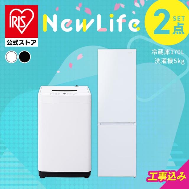 \設置サービス込み/ 【家電2点セット】家電セット 新品 一人暮らし 2点 冷蔵庫 洗濯機 セット 小型 スリム コンパクト シンプル 単身 新生活 春 白 黒 冷蔵庫 170L 洗濯機 5kg ホワイト ブラック アイリスオーヤマ 2026年