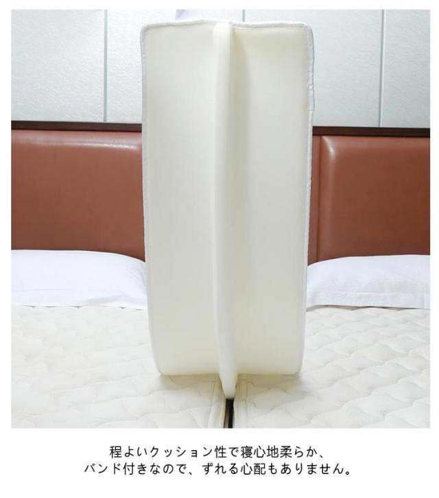 | 200cm×30m パッド+バンド+収納袋3点セット すきまパッド 【商品説明】 ★固定バンドとすきまパッド、 収納専用ポーチ3つをセットにしたことで、 マットレスがしっかりと固定ができ、 マットレスの間の隙間を埋めることが可能です。 ★程よいクッション性で寝心地柔らか、 バンド付きなので、ずれる心配もありません。 ★固定バンドはポリエステル素材と ワイドな5cm幅でマットレスをしっかり固定。 バックルで簡単に設置可能です。 ★サイズ調整可能な固定ベルト ベルトは最大10mなので、ダブル+ダブルでも安心! 長さ調整も可能でお手持ちのベッドにピッタリのサイズが選べます。 <お勧めポイント> ●体を優しくサポート 隙間パッドはしっかりとした クッション性があるので体を優しくサポートします ●通気性・肌触り◎ 隙間パッドの表面には 肌触り・通気性共に良い素材を採用しました ●しっかりとした厚み しっかりとした厚みで ベッドとベッドの隙間をしっかりとカバーします | |
