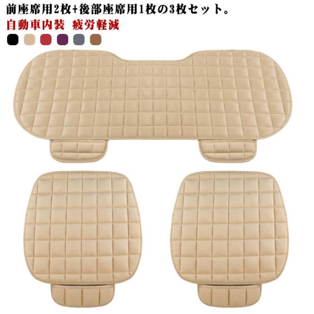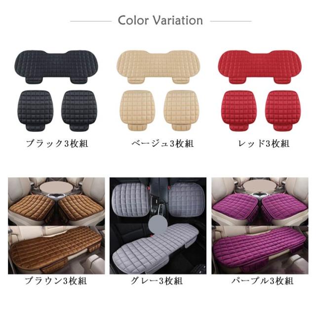 カー用品 3点セット シートクッション 自動車クッション 座布団 後座席 クッション 滑り止め 前座席 自動車クッション ふわふわ キルティング あったか 無地 秋冬 対策 自動車内装 疲労軽減 取り付け簡単