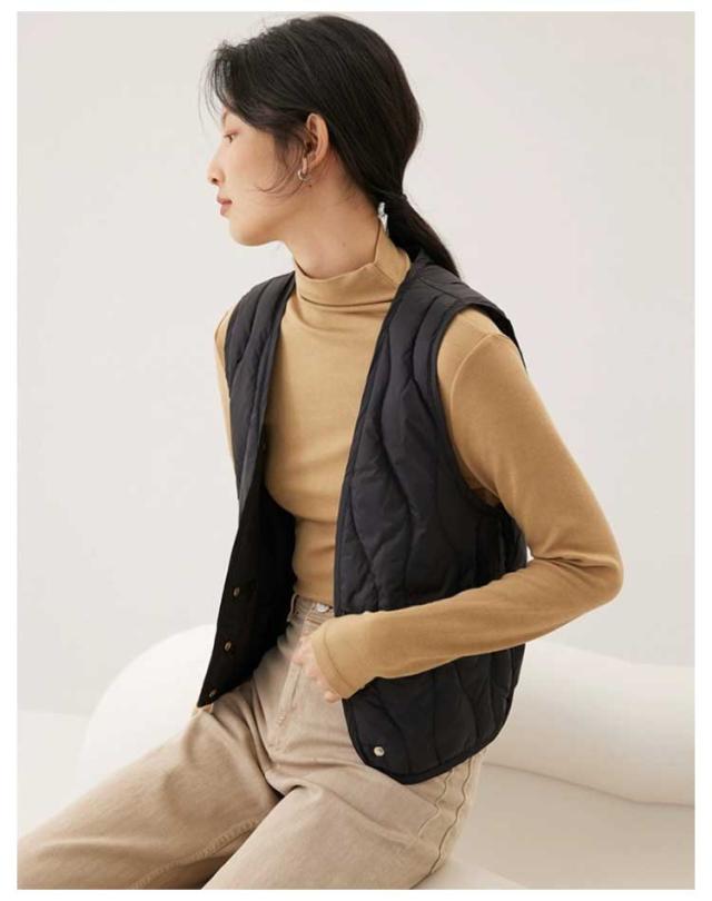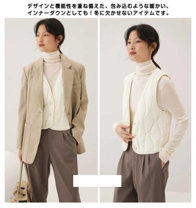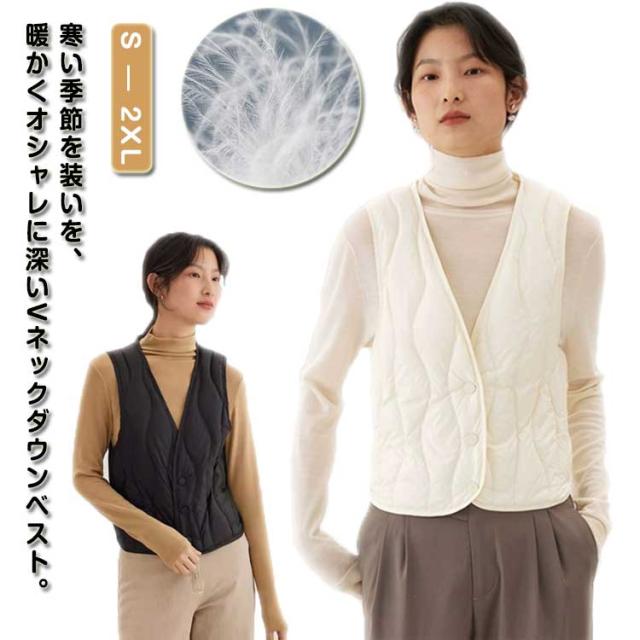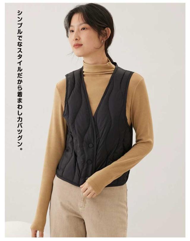 ショート 深Vネック きれいめ レディース ベスト ダウンベスト 深Vネック ライトダウンベスト 薄手 薄手ダウン インナーダウンベスト インナーダウン 暖かい 秋服 冬服 S M L XL
