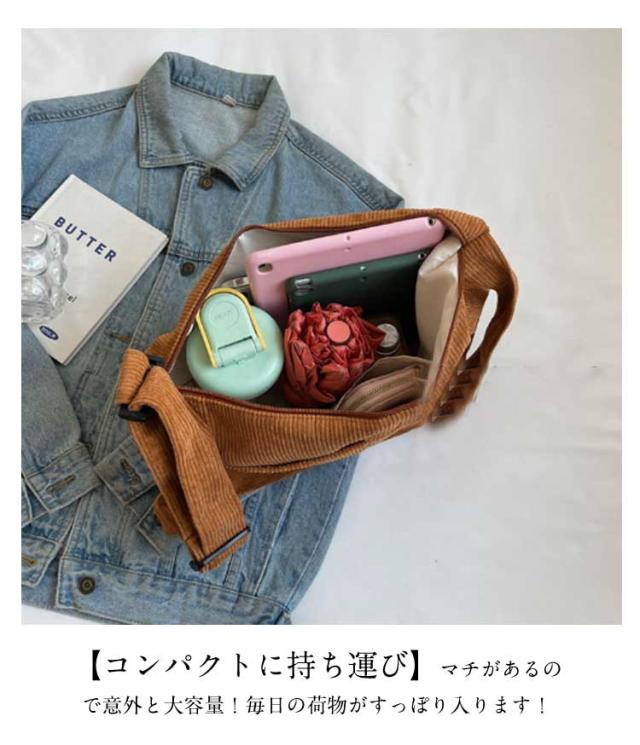 | 春秋冬の定番素材である温かみがある「コーデュロイ」素材のショルダーバッグ 【使用用途】コーデュロイの風合いがかわいいバッグです。ショルダーバッグ・斜め掛けバッグの2WAYでご使用できます。 【コンパクトに持ち運び】マチがあるので意外と大容量!毎日の荷物がすっぽり入ります! 【こだわりのカラー】コーデュロイの風合いを生かした3色のカラー 【デザイン】カジュアルコーデにぴったりです。 【ショルダーストラップ】ショルダーは長さ調節が可能で斜め掛けにも、肩掛けにも! 肩からさっとかけるだけで両手が自由に使える斜め掛け仕様、幅広い方にフィットして毎日大活躍。 | |