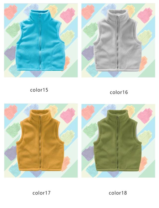 | 二重フリース素材 ふわふわ 可愛い 暖かい キッズベスト 100-150cm 18color ■軽くてお手入れのしやすいフリース素材は、子供の冬の日常着にぴったり。 ●ファスナー開きなので、着脱も簡単で体温調節に重宝する。 ●シンプルなデザインなので、柄物とも相性良い。 ★おすすめポイント★ 《1》ボトムスはストレートパンツやフレアスカート、スキニーパンツも◎。 《2》適度な厚みがあり、家でもお出かけでも着ていただける。 《3》お風呂上りにパジャマの上に着たり、アウターの中のインナーベストとしても活躍できる。 | |