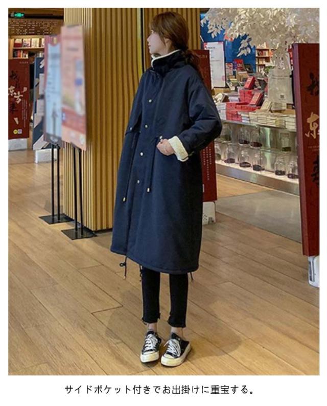 ロングコート 暖かい 裏起毛 レディース モッズコート 大きいサイズ 厚手 中綿ジャケット カジュアル ボアコート 冬 ゆったり 防寒服 通勤 防風 無地 シンプル ロングコート お洒落 秋冬