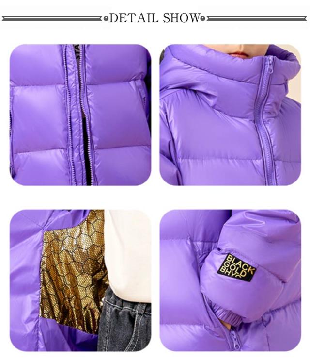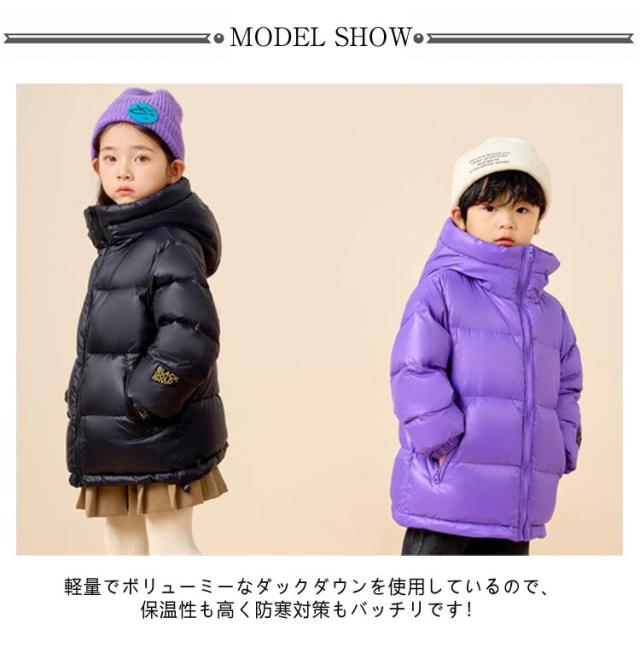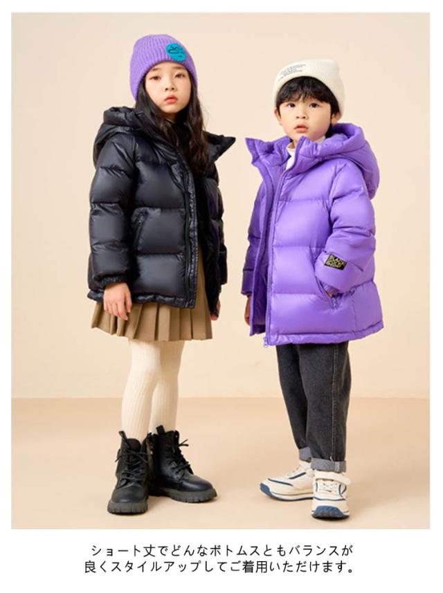 | 【キッズ用ダウンコート】【撥水 防風 保湿】【110〜170cm】 軽量でボリューミーなダックダウンを使用しているので、保温性も高く防寒対策もバッチリです! 表面に撥水加工コーテイングを施し、小雨などの急な天候変化にも対応。 ショート丈でどんなボトムスともバランスが良くスタイルアップしてご着用いただけます。 | |