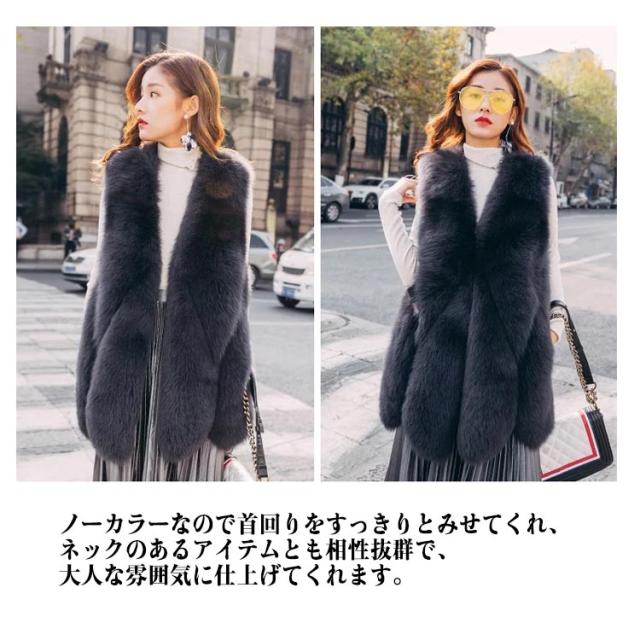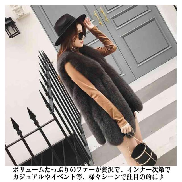 フェイクファー ファーコート 大きいサイズ 羽織り ファーベスト コート もこもこ ベスト アウター ロング 暖かい ふわふわ エコ ファー ファーコート 前開き ベスト トップス レディース 秋 冬 ジレ 体型カバー グレー ブラック