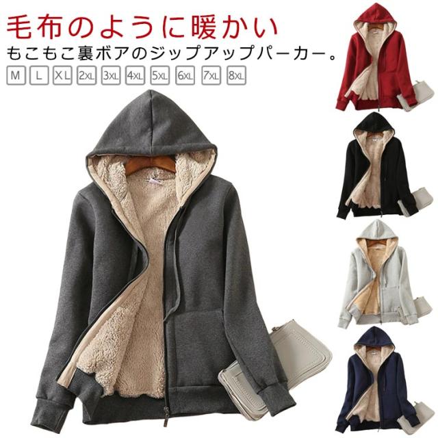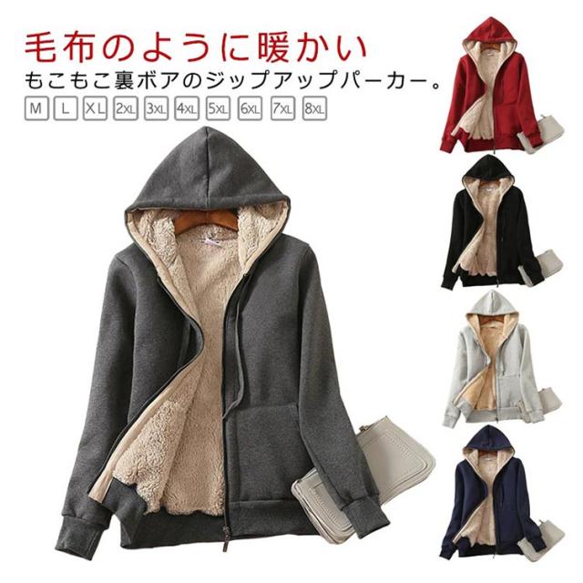 ジップパーカー 大きいサイズ レディース 裏ボア M〜8XL!ジップアップ メンズ 暖かい 裏起毛パーカー M〜8XL!ジップアップ 厚手 秋冬 フード付き 防寒 長袖 ジャケット ジャージ アウター ボアパーカー 部屋着 カジュアル 男女兼用 シンプル 通勤