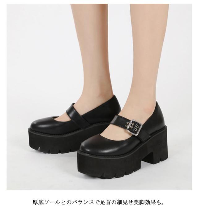 厚底 ロリータ 8cmヒール 厚底パンプス レディース 太ヒール 痛くない 歩きやすい シューズ ヒール ラウンドトゥ 厚底パンプス タンクソール 走れる 成人式 卒業式