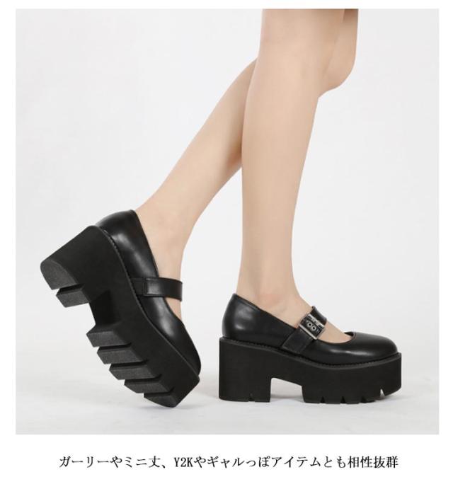 | ・厚底フォルムとストラップデザインが絶妙に可愛い。 ・前底にも厚みがあるため傾斜を感じにくく、見た目より楽に履けるのが嬉しいところ。 ・ストラップが甲をホールドし脱げにくい ・厚底ソールとのバランスで足首の細見せ美脚効果も。 ・ガーリーやミニ丈、Y2Kやギャルっぽアイテムとも相性抜群 | |