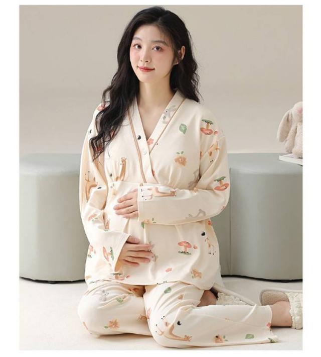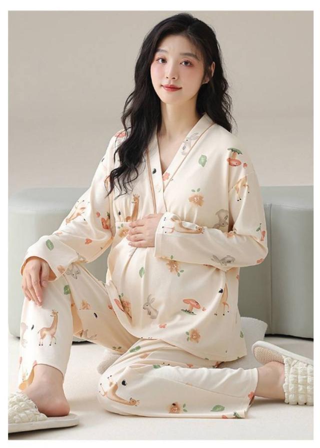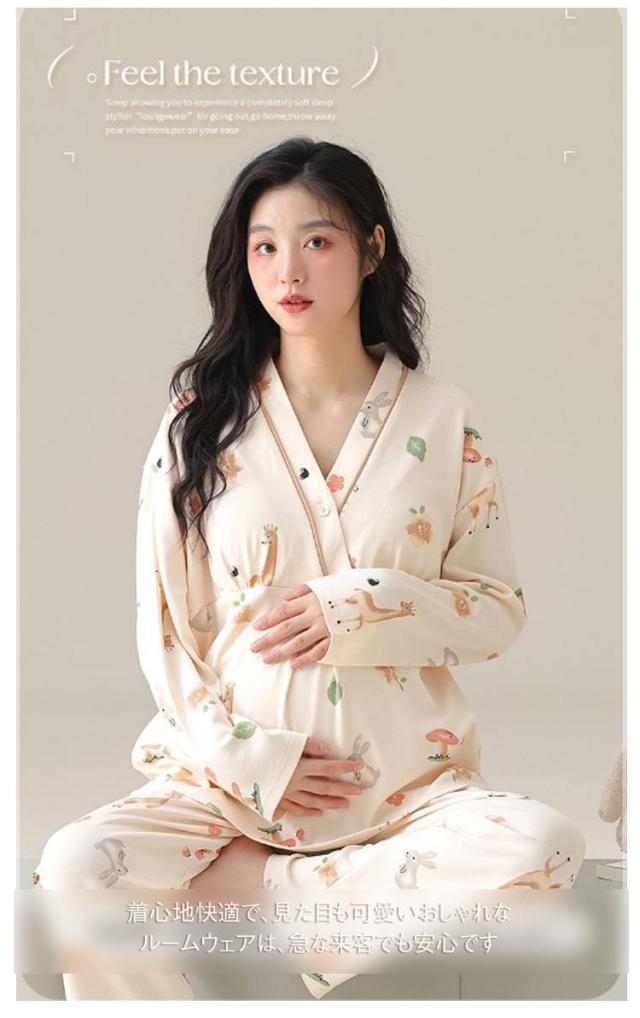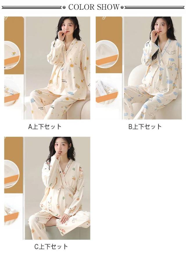 長袖 パジャマ 授乳 カップ付き 産前産後 上下セット マタニティ 綿 コットン Vネック 部屋着 ルームウェア 寝巻き 入院 出産 マタニティ 春 夏 秋 出産祝い