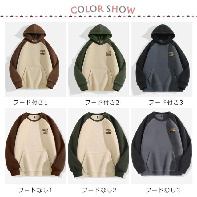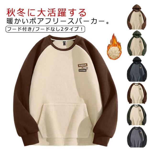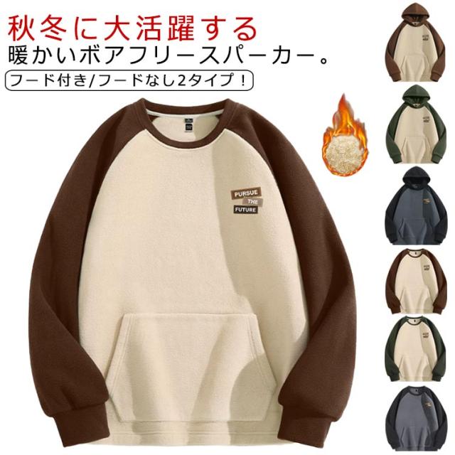ボアフリース トレーナー パーカー 両面起毛 配色 フードなし プルオーバーパーカー フード付き 長袖 加厚 トップス もこもこ 大きいサイズ XL ポケット M L 2XL ボアフリース 3XL 4XL
