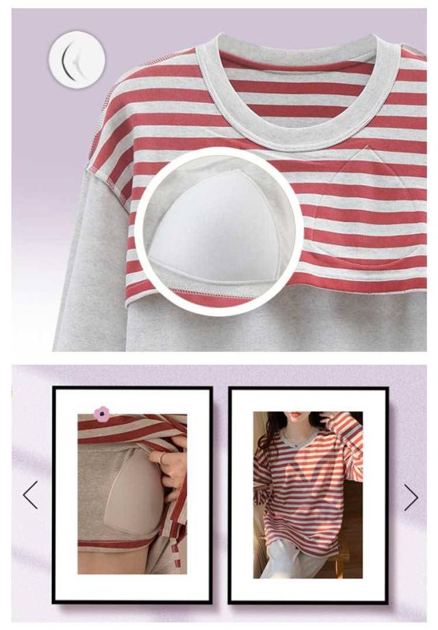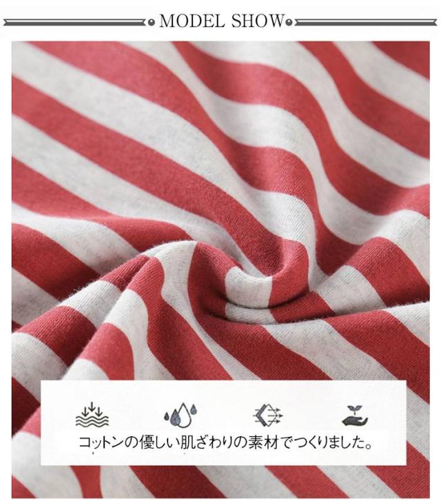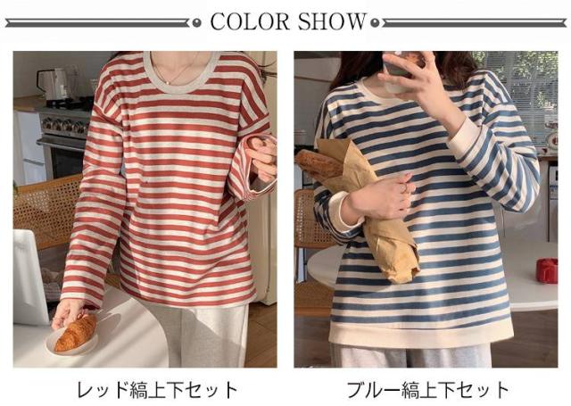 上下セット クルーネック カップ付き ポケット付き ルームウェア 長袖 綿 コットン パジャマ ブラカップ付き ボーダー柄 丸首 部屋着 シンプル ルームウェア 寝巻き おしゃれ かわいい 修学旅行 春 秋