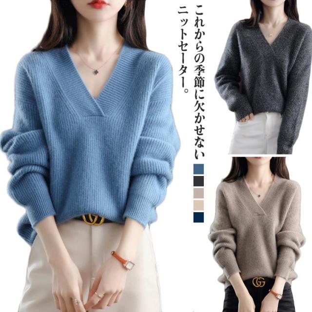 もっちり Vネック ニット トップス レディース ニット セーター 長袖 ニットフェア ドロップショルダー リブニット ニットセーター 秋冬 秋 オフィス 薄手 暖かい 大きいサイズ きれいめ あったか 可愛い 体型カバー 無地 シンプル 大人 女性 送料無料