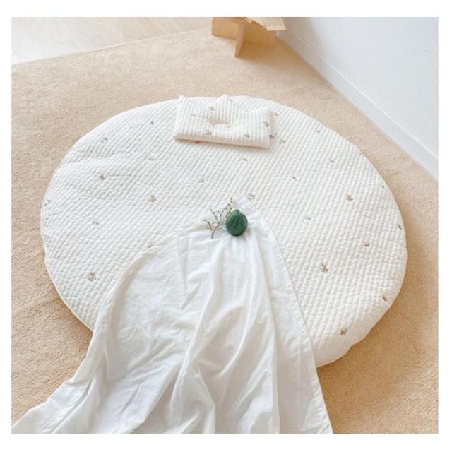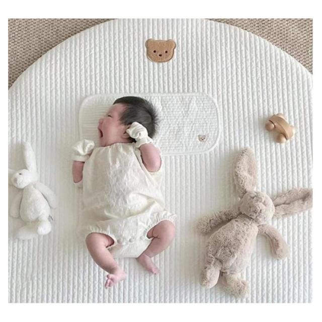 | ・ラウンド型がかわいいキルティングマット ・リビングにぽんと置くだけで、赤ちゃんのためのスペースが作れます。 ・お昼寝の時や遊ぶ時など、いつでも広げて使えるので、とても便利で重宝しています。 ・出産祝いやハーフバースデー・1歳のお誕生日ギフトに人気です。 | |