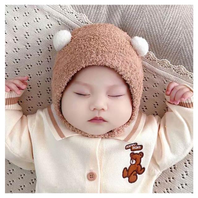 ニット帽 クマ くま 新生児 赤ちゃん 帽子 新生児帽子 ベビー帽子 クマさん 赤ちゃん帽子 暖かい ボア帽子 子ども キッズ 帽子 冬 耳付き ポンポン付き ベビー 子供 暖かい ふわふわ 寒さ対策 クマさん ハロウィン クリスマス プレゼント ギフト