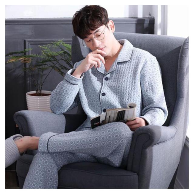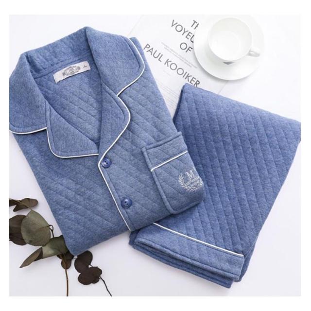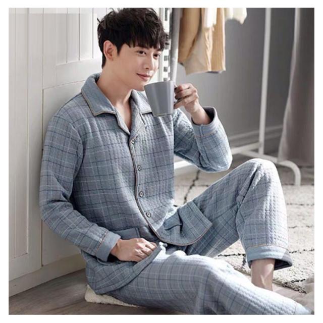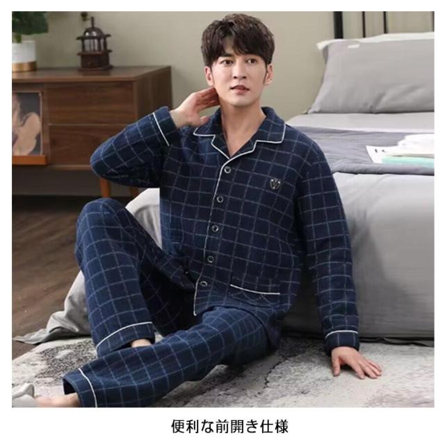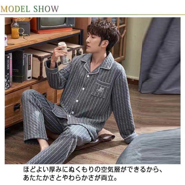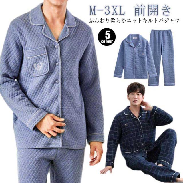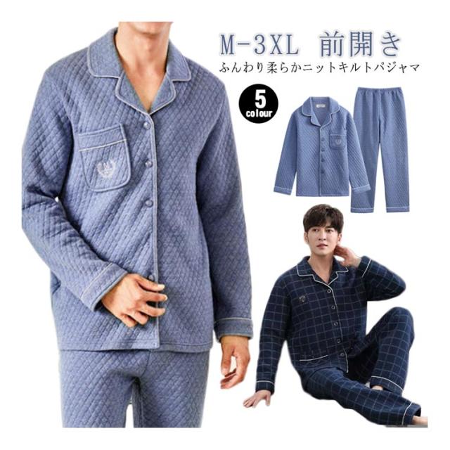 キルトニット 綿 セットアップ 厚手 ルームウェア パジャマ 前開き ニットキルト 上下セット 長袖 暖かい 入院 メンズ 男性 部屋着 大人 敬老の日 旅行 紳士