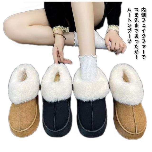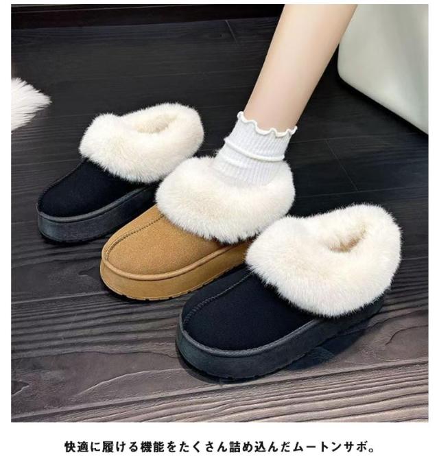 裹起毛 暖かい スノーブーツ もこもこ 防寒 ムートン スリッポン 防滑 保温 ムートンブーツ レディース 軽量 厚底 ボア 疲れない ファー あたたかい 5cmヒール プラット シューズ スエード 歩きやすい スリッパ おしゃれ