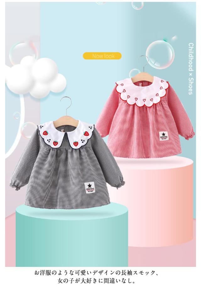 | 90-120cm!洗濯しやすい・汚れに強い防水加工のキッズスモック。 お洋服のような可愛いデザインの長袖スモック、女の子が大好きに間違いなし。 可愛いスカラップ襟に繊細な刺繍が施され、まるでおしゃれなブラウス。 外出時恥ずかしくないおしゃれにスモックを着用できます。 長袖タイプなので、お洋服はいつでも清潔にいられる。 胸部分は防水加工で、お食事など時もお洋服を汚せず安心。 すっぽり被るだけで可愛く汚れ防止◎ お家はもちろん、幼稚園や保育園でも大活躍に間違いなしです。 | |