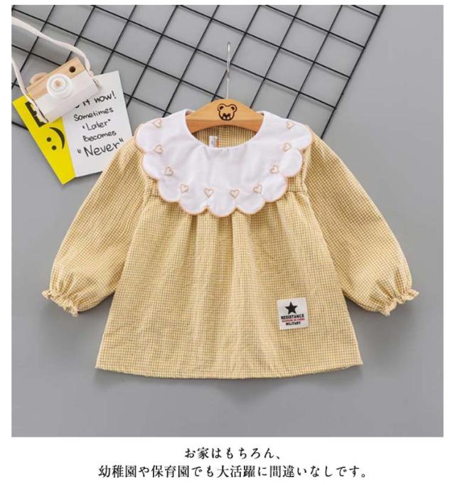 お砂場着 子供 チェック柄 ブラウス 外遊び スモック お食事 コットン ベビースモック 綿 スモック 可愛い 絵画 春 長袖スモック 刺繍 エプロン 汚れ防止 外遊び お食事 砂遊び 保育園 幼稚園 赤ちゃん 幼児 防水エプロン 子供服 エプロン 秋冬 ギフト 送料無料 90 100 110