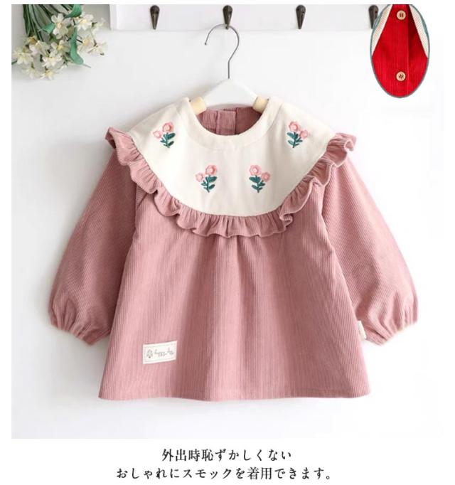 汚れ防止 お食事 フリル スモック 砂遊び 刺繍 可愛い お砂場着 ベビースモック ブラウス エプロン 長袖スモック 子供 エプロン 外遊び 汚れ防止 保育園 外遊び お食事 ギフト 絵画 幼稚園 秋冬 幼児 防水エプロン 子供服 春 スモック 赤ちゃん 送料無料 80 90 100 110