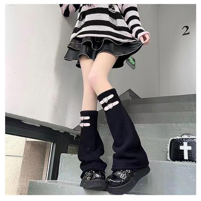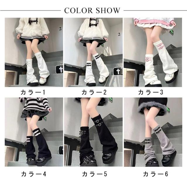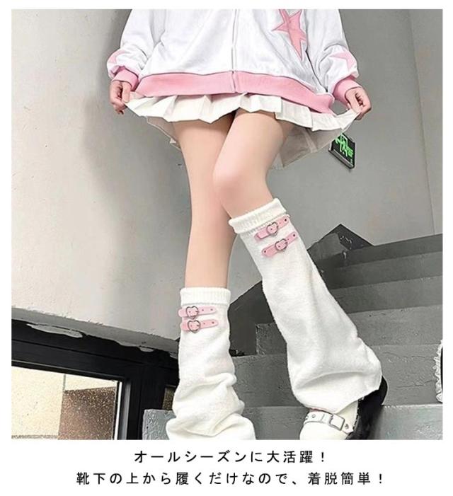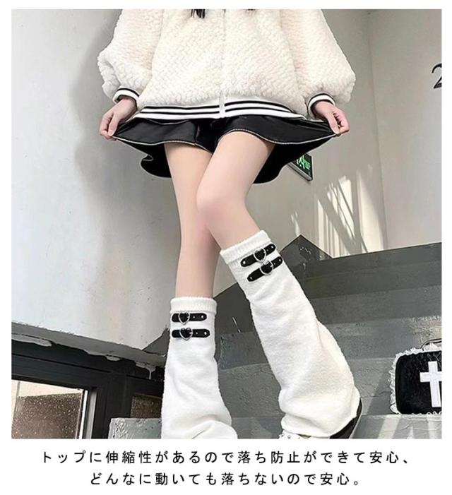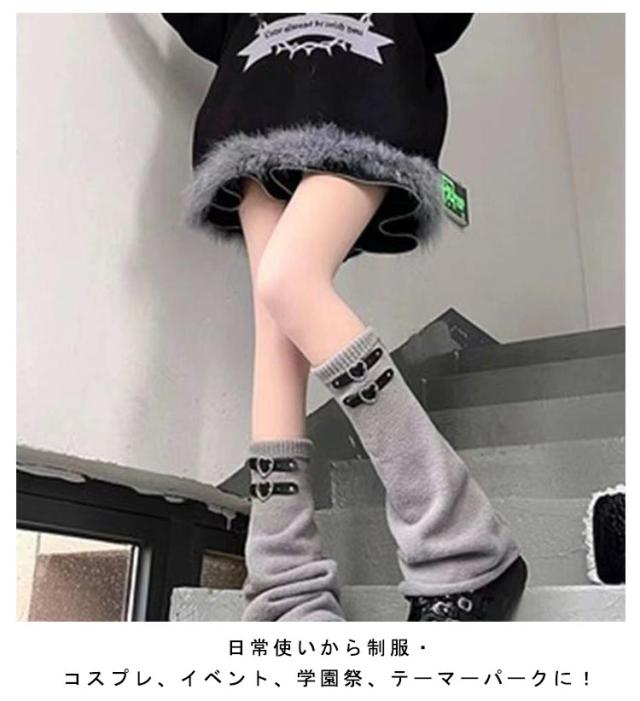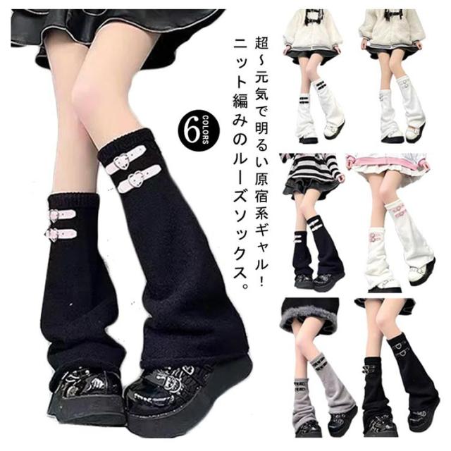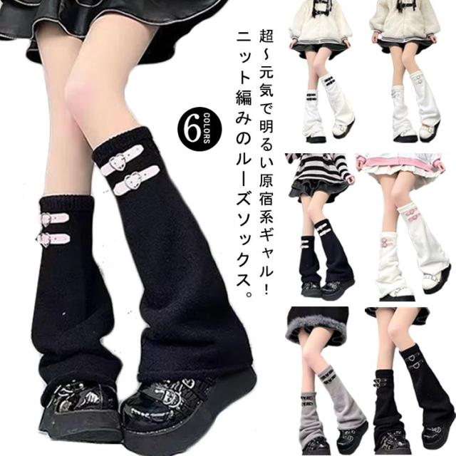 ルーズソックス ベルト付き ニット レッグウォーマー レッグカバー レディース 足首ウォーマー 可愛い 厚手 防寒 冷え対策 暖かい 靴下 原宿系 ギャル 地雷系 サブカル ゴシック系 可愛い コスプレ冷え対策 文化祭 学園祭 送料無料