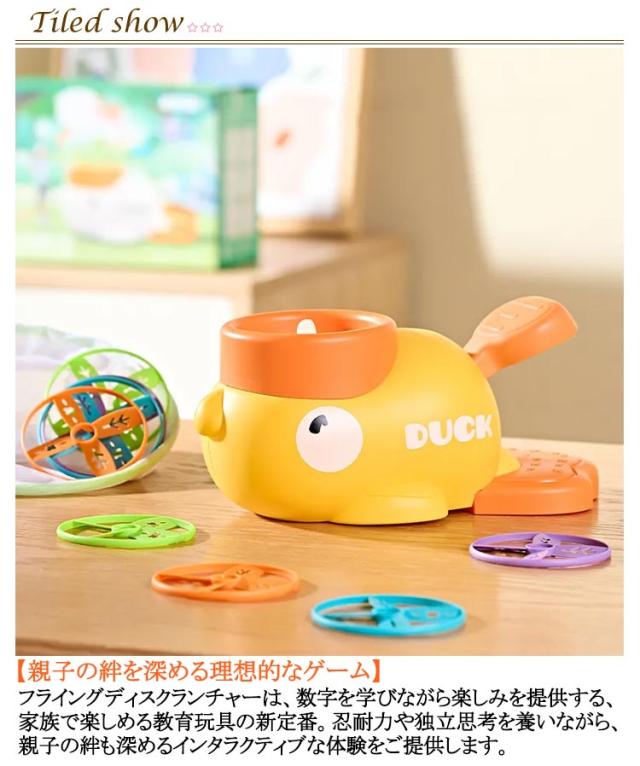 | 【親子の絆を深める理想的なゲーム】 フライングディスクランチャーは、数字を学びながら楽しみを提供する、家族で楽しめる教育玩具の新定番。忍耐力や独立思考を養いながら、親子の絆も深めるインタラクティブな体験をご提供します。 【シンプルで楽しい操作】 わんちゃんの口型ランチャーにディスクをセットし、ペダルを踏むだけ。フライングトイが飛び出し、ネットでキャッチも可能。子供たちはお友達やご家族と共に、または一人でも、このゲームを存分に楽しめます。 【運動能力の向上】 足で操作するランチャーで遊ぶことで、運動能力、脳の反応速度、迅速な反応、手と目の協調性、集中力を自然に高めます。ルールを設けてフライングディスクをキャッチするだけで、子供たちは楽しくエクササイズをこなします。 【どんな場にもぴったりのギフト】 お子様を長時間夢中にさせること間違いなしの当社フライングソーサーランチャー。パーティーや誕生日、休日、クリスマスに最適なアイテムです。社会性を養うために、複数のお子様での使用も推奨します。 【耐久性と安全性に優れた設計】 耐衝撃性に優れた高品質のABS素材で作られた当社のフライングディスクランチャーは、お子様が両足で踏んでも壊れにくい頑丈さ。ペダルには緩衝装置があり、足を痛める心配もありません。 | |