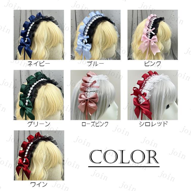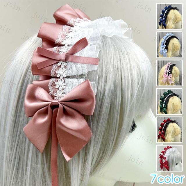 h152#ヘッドドレス ロリータ 当日発送 7color カチューシャ ヘアアレンジ 40代 ヘアアクセサリー レディース 髪飾り リボン ゴスロリ コスプレ お嬢さま 文化祭