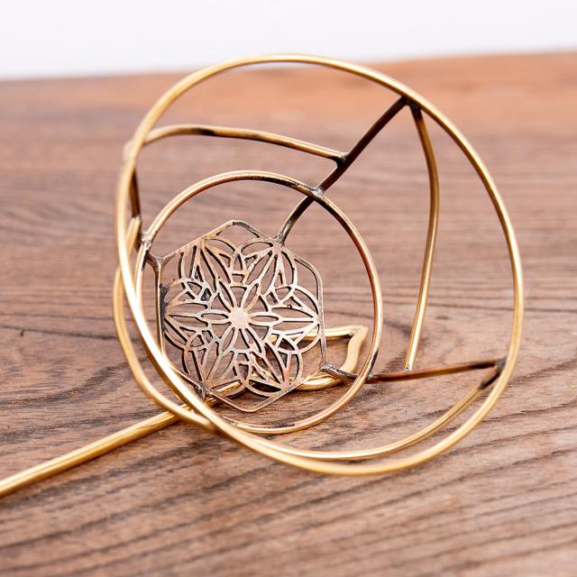 インド伝統模様 ゴールドのお団子ヘアアクセ かんざし付き / かんざし、エスニック、髪飾り、金、ヘアアクセ、ヘアスティック、インド、お団子、シニヨン、お団子ヘア アクセ 【インドとアジアのアクセサリー