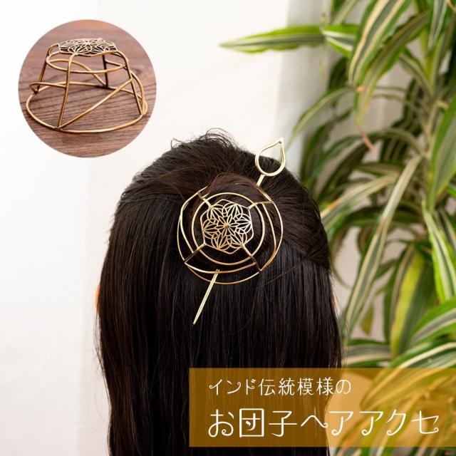インド伝統模様 ゴールドのお団子ヘアアクセ かんざし付き / エスニック 髪飾り 金 ヘアスティック アジア アクセサリー アンクレット ピアス リング ビンディー