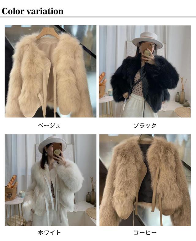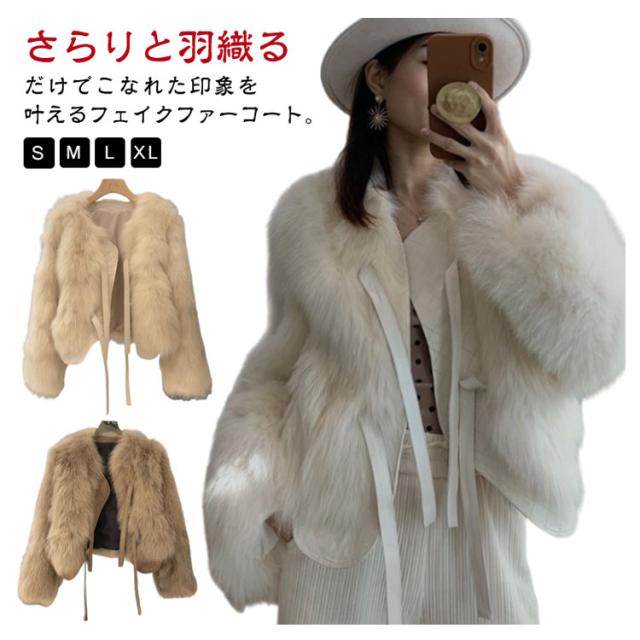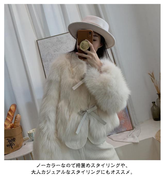 毛皮コート コート 長袖 フェイクファー ノーカラー もこもこ ふわふわ 暖かい ショート丈 ファーコート エコファー エレガント ファーコート レディース あったか アウター ファーブルゾン 保温