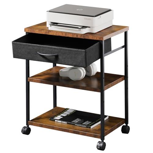 Maihail サイドテーブル ワゴン キャスター付き パソコンラック サイドワゴン プリンター台 デスクワゴン 板は調節可能 袖机 PC本体収納 幅48x奥行30x高さ60cm ビンテージ