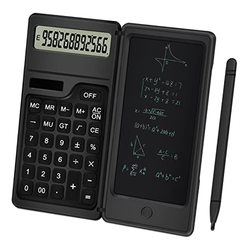 Lefon 電卓付き電子メモ 電卓 ソーラー 折りたたみ 計算機&電子メモパッド2in1 電池式 12桁 ワンタッチ消去 オフィス、学生、仕事用 ビジネス用