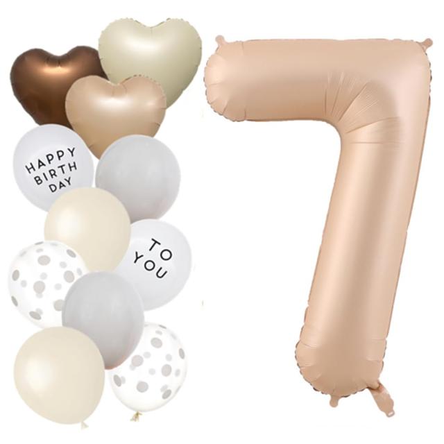 数字 バルーン ベージュ 大きい 誕生日 風船セット くすみ ナンバーバルーン アイボリー バースデー デコレーション 7歳 誕生日お祝い 記