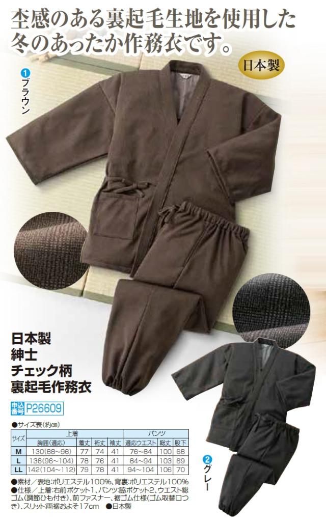 日本製 紳士チェック柄裏起毛作務衣 全2色 作務衣 裏起毛 作業服 部屋着 ブラウン ネイビー メンズ 紳士服 シニア 男性 ホームウェア セットアップ 上下セット 和服 和装 シニアファッション 40代 50代 60代 70代 80代 父の日 お父さん おじいちゃん 秋冬 natu p26609