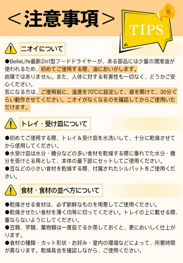 - 初めてフードドライヤー使ってみたのですが、分かりやすくて、コンパクトでスタイリッシュなので気に入りました。あと、レシピブックも付いてきて、料理のレパートリーが増えました!