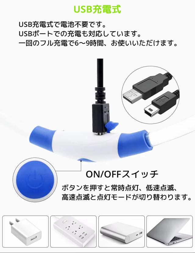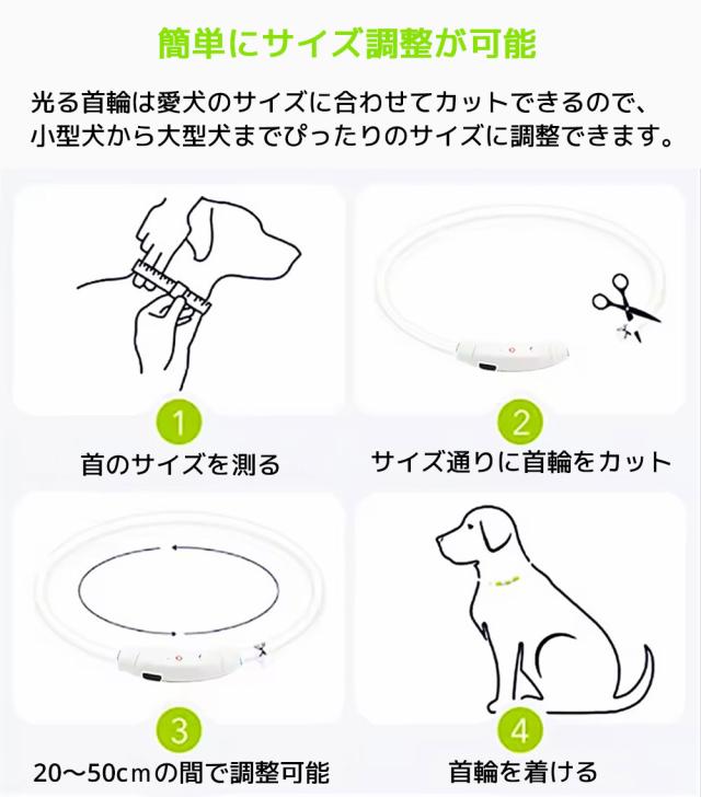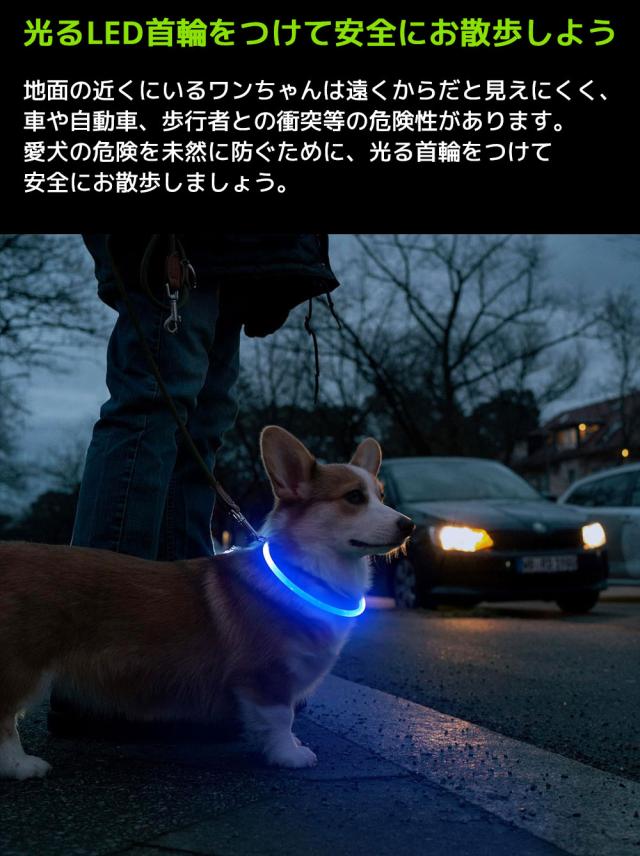 光るLED首輪 USB 充電式 防水 USB充電式 小型犬 中型犬 大型犬 サイズ調整可能 散歩 夜 ライト 事故防止 安全 おしゃれ 可愛い ペット用品 簡単脱着 安全対策