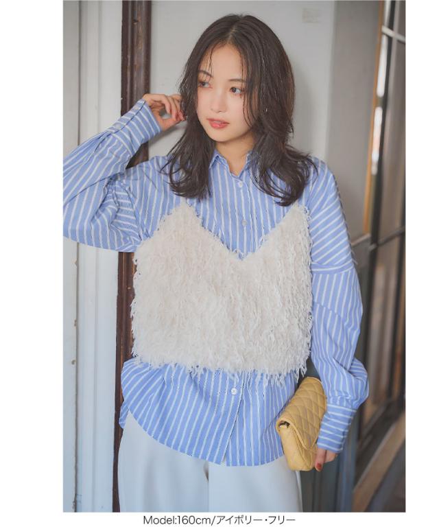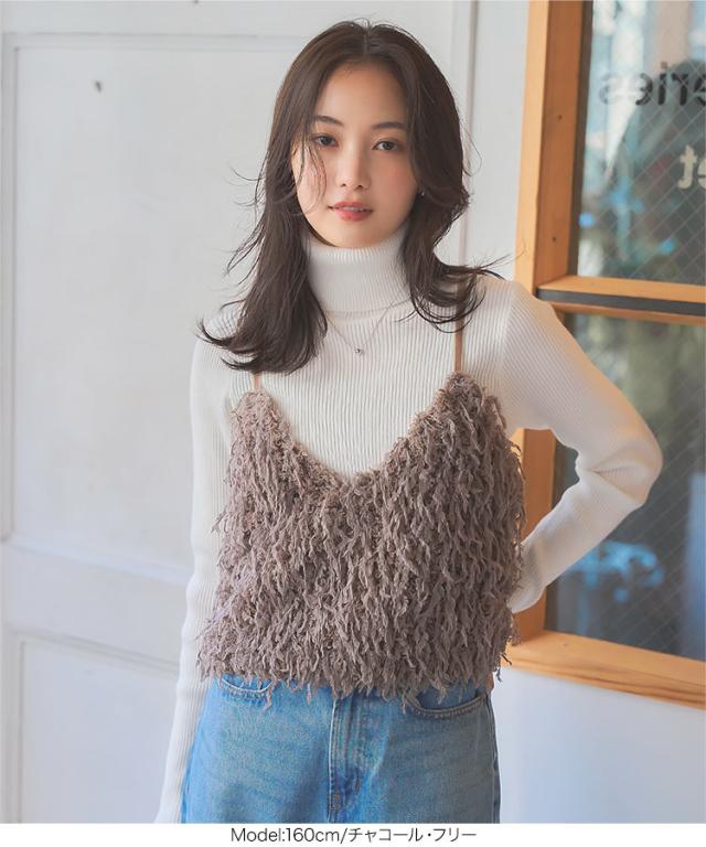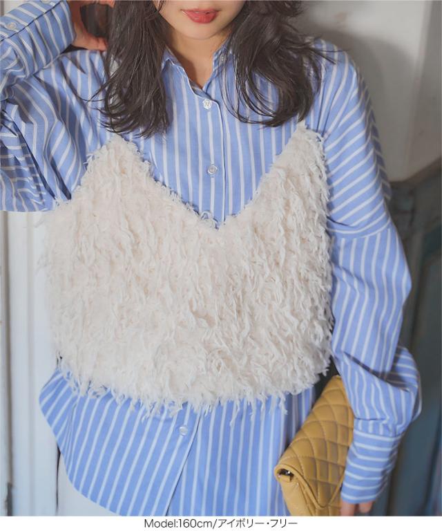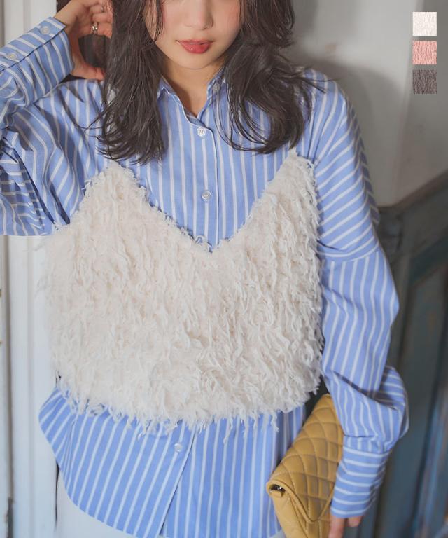 フェイクフェザービスチェ C7290 入荷済 フェザー ビスチェ レイヤード 重ね着 Vネック ベロア フェイクフェザー 毛足長め 丈短め コンパクト 低身長 かわいい 上品 フェミニン ガーリー 無地 ピンク アイボリー ホワイト チャコール グレー