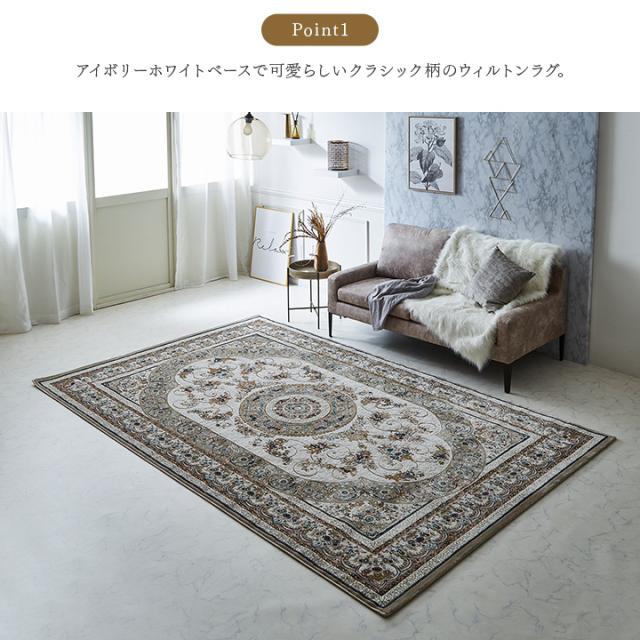 【ホットカーペット/床暖房対応】ラグ カーペット 200x250cm トルコ製 クラシック柄 ウィルトンカーペット ロザリオ 2色対応 ラグマット 長方形 3畳 絨毯 おしゃれ オールシーズン リビング 寝室 かわいい